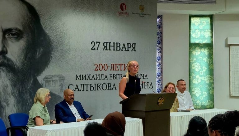 On 20 February 2026, at the Russian Centre in Trivandrum (India), at the invitation of the Honorary Consul of the Russian Federation, Mr Naer Belyaev, Kristina Sergeevna, Chair of the Union of Russian Schools in Switzerland and Headteacher of the ‘Lukomorye’ School (Zurich, Zug, Schwyz), delivered a presentation dedicated to the bicentenary of the birth of M. E. Saltykov-Shchedrin.